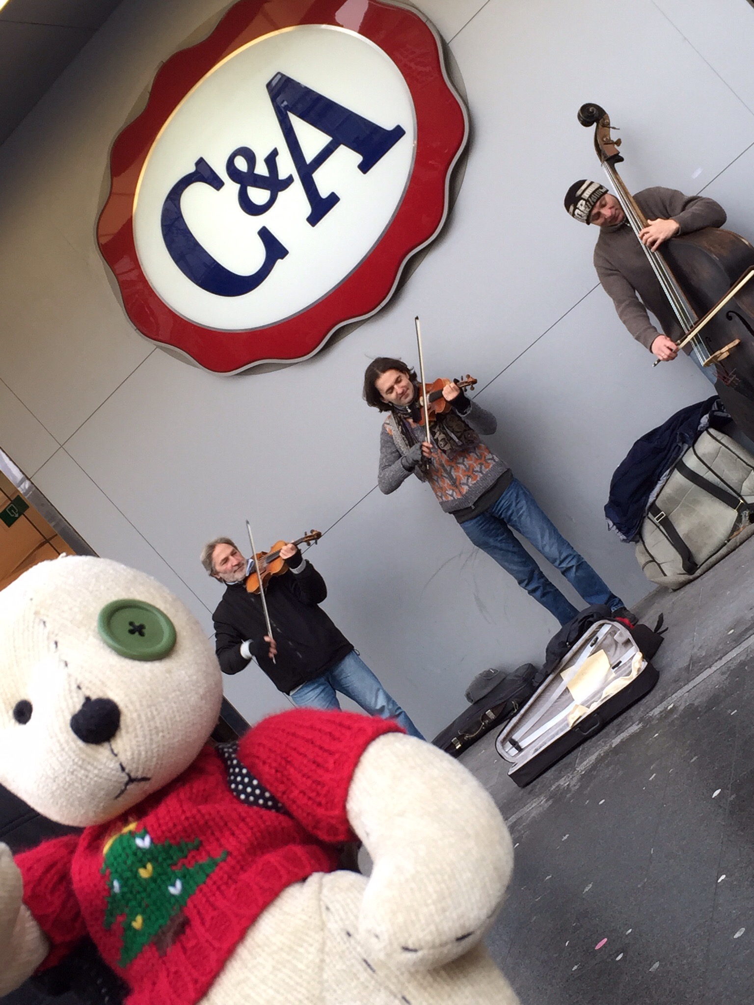 We had some coffee and pastry and then headed back to the station to catch our train to continue to Amsterdam….but look! there’s a cathedral, and look! there’s a string trio playing classical music on the sidewalk. We looked, we listened. We had lots of time. Or so we thought.