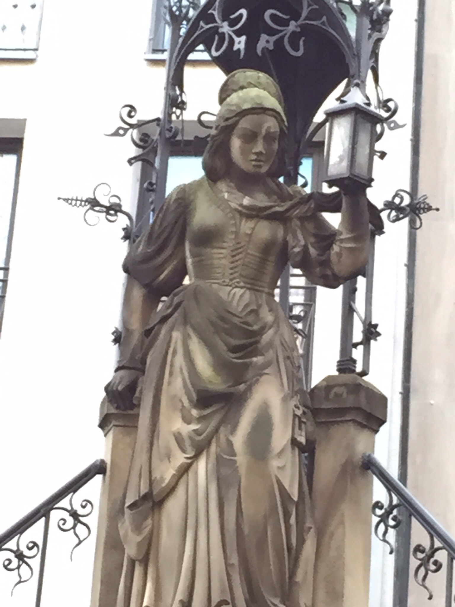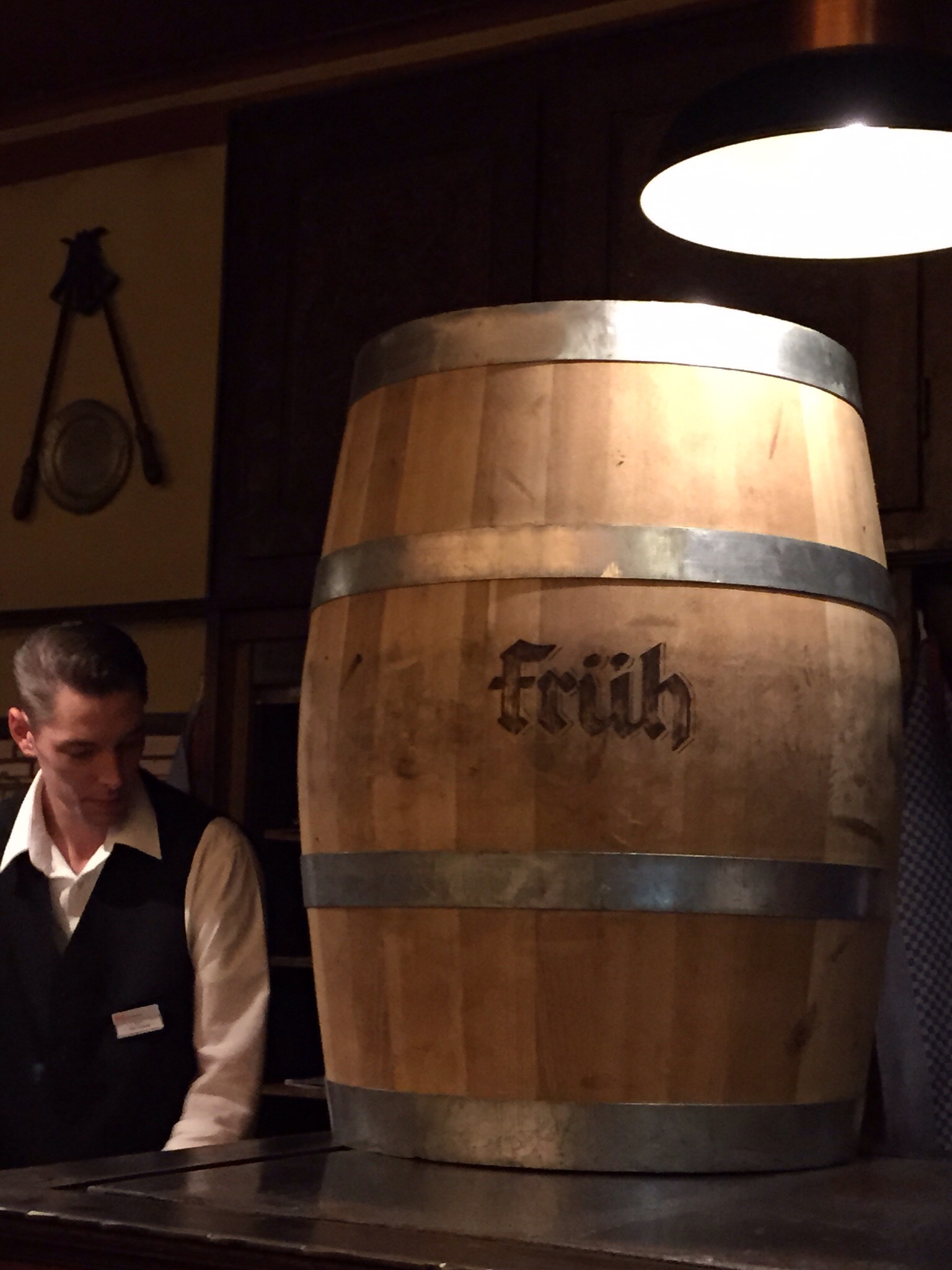 The train station in Koln literally let’s out onto the plaza in front of the cathedral. I mean, it’s RIGHT THERE…the biggest church in Europe, the biggest church facade In the world…it is HUGE. We vowed to visit it properly..which meant we had to eat first. Passing an elaborate statue dedicated to the “heinzelmannchenbrunnen” ( a tailor’s wife who ruined a good thing for the city of Cologne when she angered the little gnomes who were doing everyone’s work for them) we found a family style, loud, beer-full restaurant called Fruh and ate some good German hack steak, bratwurst, potatoes, a huge pretzel, and drank beer, schnapps, and some good red wine. Our waiter, as it turns out, was from Spain, so we had a good conversation, in Spanish, in Germany. The world keeps getting smaller.